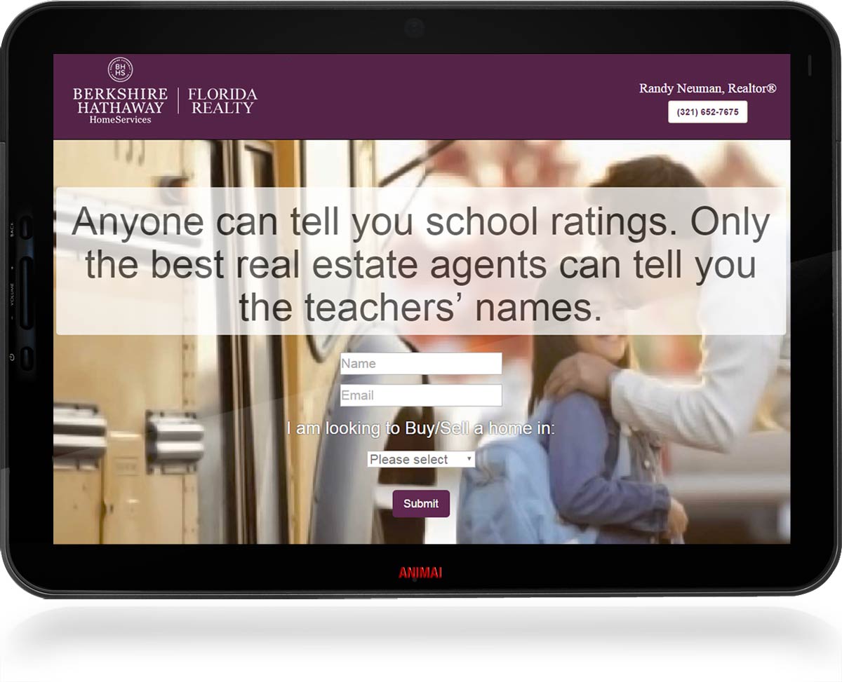 I met Berkshire Hathaway Home Services Realtor® Randy Neuman at the Melbourne Regional Chamber of Commerce. Randy enjoys marketing his services via various channels, including print ads, social media, and his own websites on the Internet. He approached me to do a simple and elegant yet catchy landing page that would make it easy for home buyers and sellers to contact him.